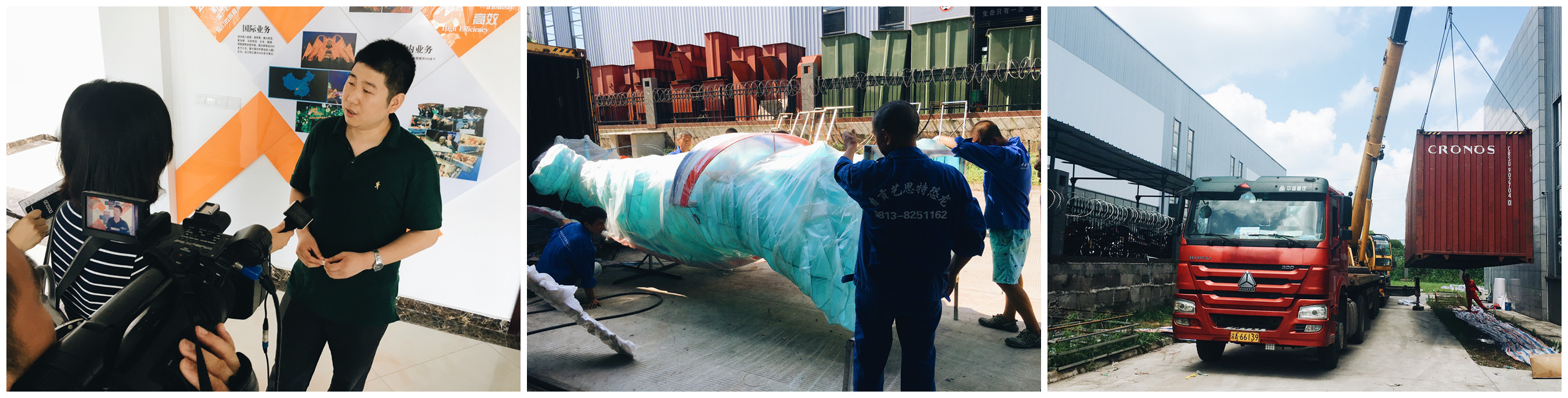 (自貢電視臺記者對自貢市燈貿(mào)集團(tuán)股份有限公司國韻公司總經(jīng)理李斌進(jìn)行采訪) (工作人員對彩燈進(jìn)行裝箱) (運輸車正在裝載集裝箱)