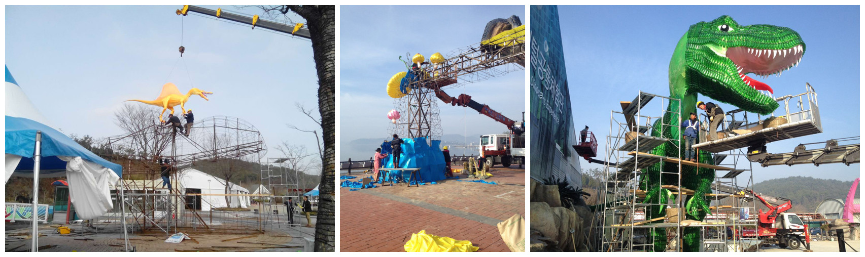 由自貢燈貿(mào)股份有限公司承制的“2016年慶南固城恐龍世界博覽會(huì)”目前已進(jìn)入安裝調(diào)試階段,展會(huì)共有百余組大中型彩燈和仿真卡通恐龍,預(yù)計(jì)將于4月1日如期開幕。