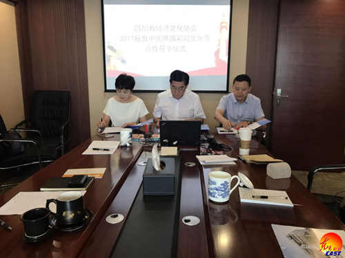 授牌儀式后,舉行了自貢燈貿(mào)集團(tuán)股份有限公司與四川省經(jīng)濟(jì)文化協(xié)會(huì)“2017秘魯中國(guó)熊貓彩燈文化節(jié)”合作簽字儀式。