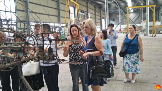 訪問團(tuán)一行在集團(tuán)公司執(zhí)行總裁陶建軍的陪同下走進(jìn)東方彩燈出口基地,參觀集團(tuán)公司美國、秘魯燈展制作現(xiàn)場,了解仿真恐龍和彩燈制作流程及工藝。訪問團(tuán)與公司有關(guān)人員就城市亮化工程、冬季節(jié)日燈展旅游等展開了積極地交流和討論。訪問團(tuán)成員對(duì)東方彩燈給予了高度評(píng)價(jià),并希望燈貿(mào)集團(tuán)與瀑布市的合作突破市場層面,實(shí)現(xiàn)多元、多維合作。集團(tuán)公司董事長劉婭表示燈貿(mào)集團(tuán)將充分借助“2018中加旅游年”的政策機(jī)會(huì)窗口,搭上兩國文化交流的快車道,向加拿大民眾展示東方彩燈的艷麗繽紛、美輪美奐。