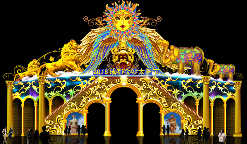 由自貢燈貿(mào)集團(tuán)股份有限公司承制的2018成都金沙太陽(yáng)節(jié)燈展目前已進(jìn)入緊張有序的現(xiàn)場(chǎng)安裝階段。本次太陽(yáng)節(jié)共分《龐貝文明》、《古蜀文明》、《太陽(yáng)文化》、《傳統(tǒng)民俗》、《成都與世界》五大特色主題板塊共六十余組特色燈組,每一板塊都深刻卷寫著古蜀文明和龐貝文化的悠久與輝煌。