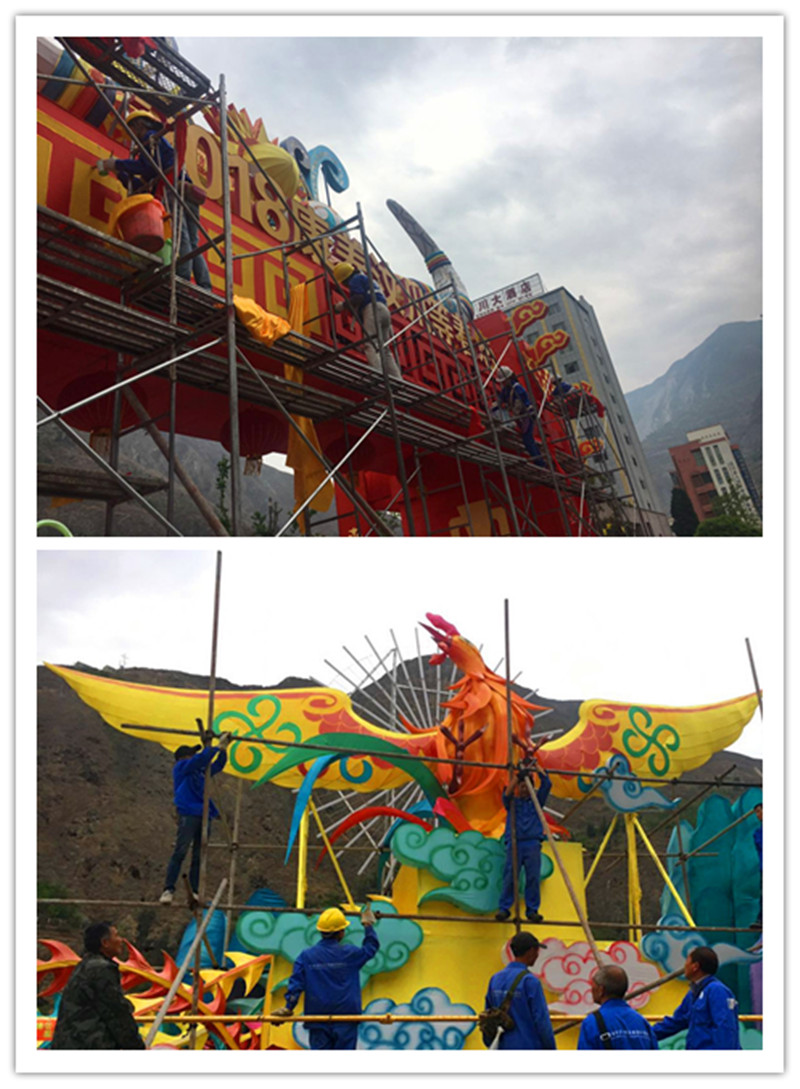 日前東方彩燈的能工巧匠們正對燈展現(xiàn)場部分燈組進(jìn)行維護(hù)。新生的燈火汶川將更加璀璨奪目!