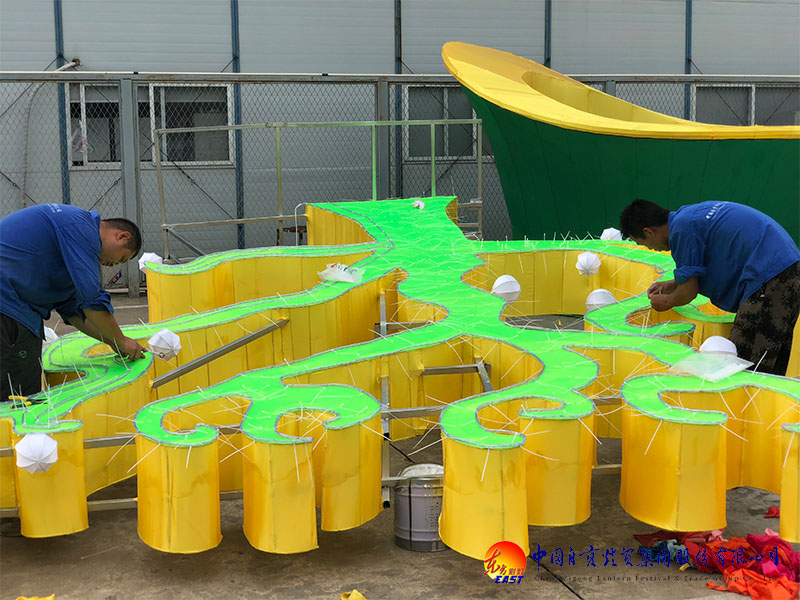 “強強聯(lián)手”——東方彩燈合作于武漢歡樂谷,量身定制主題活動燈展燈組。據(jù)悉9月份進場制作燈組,制作現(xiàn)場“圖案放樣、焊接造型、傳動制作、內(nèi)置裝燈、雕花隔斷、裱糊裝飾、美術(shù)處理、安裝調(diào)試”有條不紊。