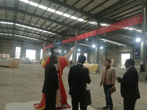 總領(lǐng)事Kebede Abera Ido一行在自貢燈貿(mào)集團(tuán)國韻公司副總經(jīng)理明祥東的陪同下參觀了東方彩燈出口基地生產(chǎn)車間,詳細(xì)了解了彩燈燈品制作、彩燈境外展出等相關(guān)情況。隨后,總領(lǐng)事Kebede Abera Ido一行來到燈貿(mào)集團(tuán)會議室,聽取自貢燈貿(mào)集團(tuán)“東方彩燈·點(diǎn)亮世界”全球巡展項(xiàng)目及公司近年外展情況的全面匯報(bào)。