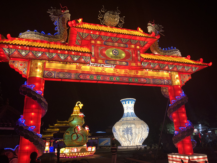 本次燈會(huì)以海南風(fēng)情為主題,燈品內(nèi)容與海南建筑、民俗有機(jī)結(jié)合,從構(gòu)圖、造型、工藝都突顯東方彩燈“精、細(xì)、巧、透、靈”的特點(diǎn)。《寶葫蘆》、《丹鳳朝陽(yáng)》、《萬(wàn)象更新》、《鄭和下西洋》等主題展區(qū),60余組設(shè)計(jì)新穎的彩燈燈組雄奇宏偉、色彩斑斕,仿佛一卷光影畫軸,向八方游客講述海南故事。