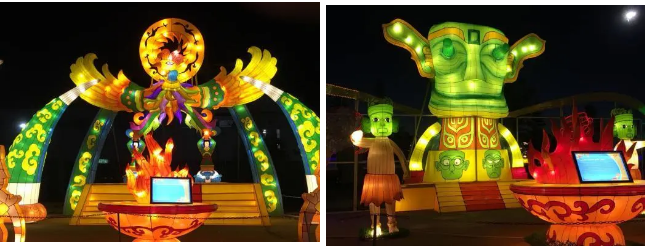 中國著名的金沙太陽神鳥元素及三星堆文化為代表的古蜀文明也用彩燈來進(jìn)行了美好的詮釋。