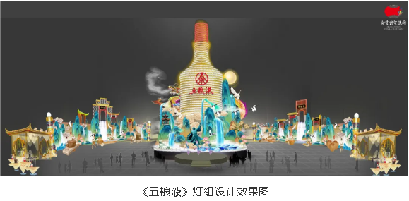 千年悠悠酒香,百年五糧精華。自貢燈貿(mào)集團(tuán)承制的大型場(chǎng)景式燈組《五糧液》,主燈采用第八代五糧液酒瓶運(yùn)用自貢彩燈傳統(tǒng)工藝?yán)υ删扌臀寮Z液,輔以仙山、仙境、巨龍騰越氛圍闡釋五糧傳奇,杯酒時(shí)光,百年味道。周邊群燈組展示封存在時(shí)光中的“活窖池”--利川永、張萬(wàn)和、劉鼎興、天賜福、聽(tīng)月樓、全恒昌等八家明代釀酒作坊,歷史悠久的古窖池群講述著傳承幾百年的五糧液釀酒工藝,折射幾千年氤氳酒香的中國(guó)酒歷史和酒文化。歲月悠悠,五糧芳香的故事將不停地續(xù)寫(xiě),在未來(lái)再創(chuàng)輝煌,歷久彌香,延綿不斷地傳承這千古佳釀。