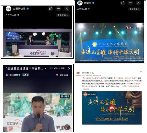 據(jù)了解,“走進三星堆 讀懂中華文明”主題活動消息發(fā)布以來,人民日報、新華社、中央廣播電視總臺和泰晤士報、聯(lián)合早報、共同社等50余家中外主流媒體進行了報道和轉(zhuǎn)載,其中,央視網(wǎng)、央視新聞、人民日報、新華社、四川日報、四川觀察等多家媒體進行了活動直播,引起海內(nèi)外網(wǎng)友廣泛關(guān)注。