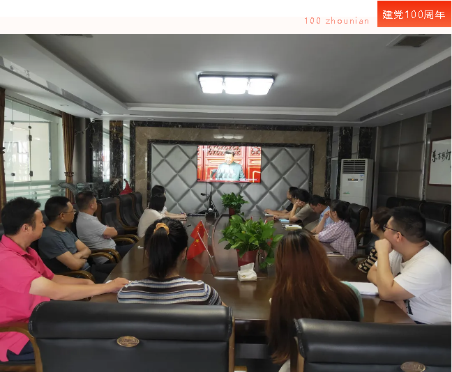 7月1日上午,喜迎中國共產(chǎn)黨成立100周年,燈貿(mào)集團(tuán)全體員工在會(huì)議室集中觀看、學(xué)習(xí)中共中央總書記、國家主席、中央軍委主席習(xí)近平在建黨100周年慶祝大會(huì)上發(fā)表的重要講話,共同慶祝中國共產(chǎn)黨百年華誕。