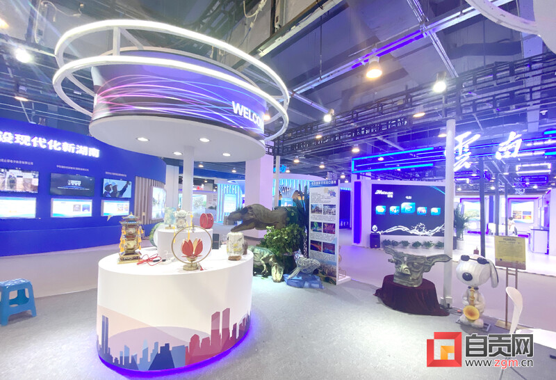 作為全國首批國家文化出口基地,自貢精心組織了18家文化貿(mào)易企業(yè),攜各具特色的彩燈、仿真恐龍、扎染等文化產(chǎn)品組團亮相展會,讓自貢元素閃耀服貿(mào)盛會。其中燈貿(mào)集團亮相服貿(mào)會現(xiàn)場的“縱目面具人”以三星堆博物館六大國寶之一的青銅縱目面具為設(shè)計理念,采用絲架立體造型,色丁布裱糊,表面美術(shù)處理,LED光源內(nèi)透等傳統(tǒng)彩燈技藝來呈現(xiàn)。燈貿(mào)集團推出“三星堆室內(nèi)微縮彩燈光影藝術(shù)展”環(huán)球巡展項目,以“室內(nèi)微縮燈會”為載體,以三星堆文化IP為支撐,讓三星堆文化和自貢彩燈文化融合創(chuàng)新,進而延伸中華傳統(tǒng)文化品牌的價值鏈,提升中華文化品牌國際知名度。