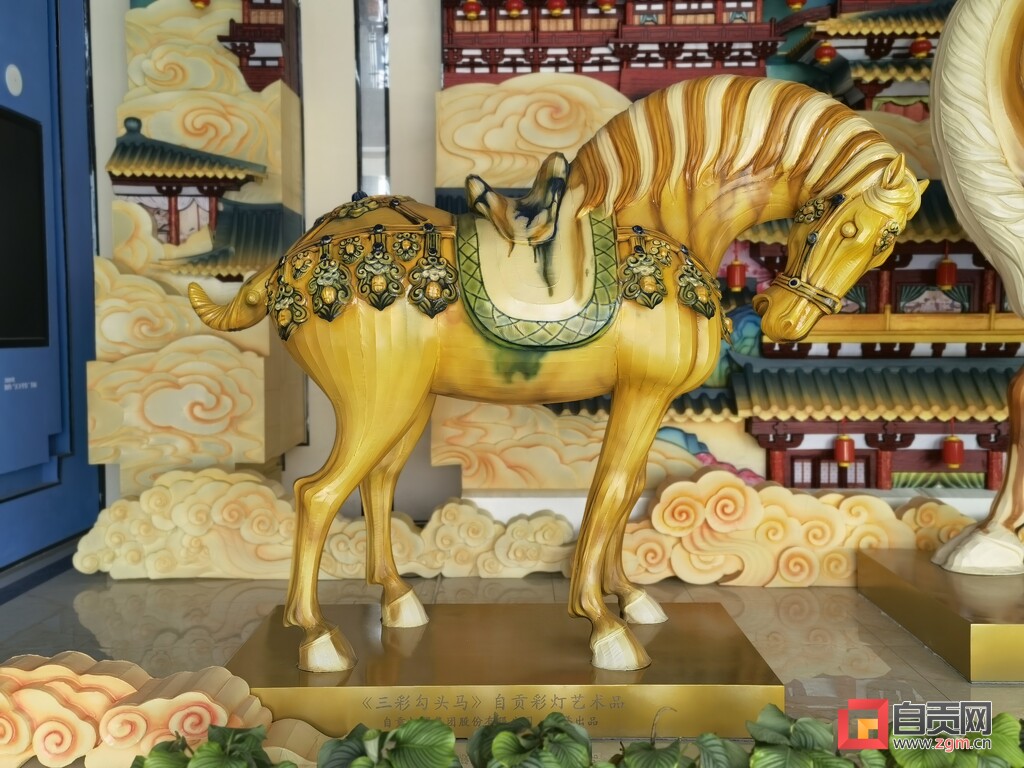 《唐風(fēng)華韻》系列燈組共有四座,分別是《三彩嘯天駱駝》《三彩勾頭馬》《三彩傾訴》和《三彩游春》,將自貢彩燈與唐三彩兩種非遺技藝全新融合,由自貢燈貿(mào)集團股份有限公司設(shè)計制作。