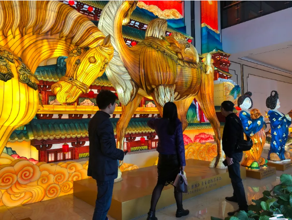調(diào)研組一行參觀了東方彩燈(出口)基地,觀摩了燈貿(mào)集團(tuán)將自貢彩燈與唐三彩兩種非遺技藝的全新融合的“唐風(fēng)華韻”展品。集團(tuán)執(zhí)行總裁陶建軍向調(diào)研組一行介紹了燈貿(mào)集團(tuán)發(fā)展?fàn)顩r,以及公司全新彩燈產(chǎn)品。公司為促進(jìn)彩燈產(chǎn)業(yè)的創(chuàng)新性轉(zhuǎn)化和創(chuàng)造性發(fā)展,推出了文化+創(chuàng)意+科技全新彩燈產(chǎn)品,產(chǎn)品深度挖掘文化底蘊(yùn)動(dòng)線,變被動(dòng)式觀燈為主動(dòng)式沉浸、行浸觀燈,燈展的供給創(chuàng)新能力和消費(fèi)場(chǎng)景獲客能力得到了較大的提升。